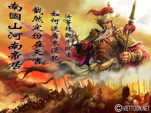 Lý Thường Kiệt và bài thơ Nam Quốc Sơn Hà bằng tiếng Hán – Hình Lý Thường Kiệt được phỏng theo các pho tượng Hộ Pháp Thần tại chùa cổ Việt Nam. Ví ông cũng như các vị anh hùng Việt nam là những vị thần thánh giáng trần bảo vệ non song.