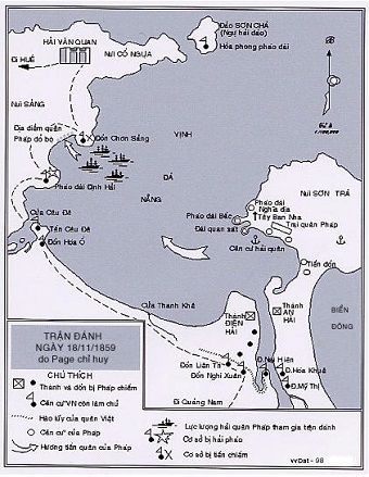 Ngày 1 tháng 11 năm 1859, tướng Page đến Đà Nẵng và việc làm đầu tiên của ông là, một mặt vẫn tiếp tục thương thuyết (nhưng trong yêu sách không còn đòi nhường đất nữa), mặt khác cho chuẩn bị mở một cuộc tấn công lên phía bắc Đà Nẵng (trên đường đến Huế), chứ không tìm cách đánh sâu vào nội địa Đà Nẵng – Quảng Nam như người tiền nhiệm.
