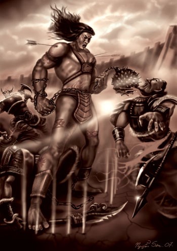 Khi biết tin Lý Ông Trọng đã về nước, quân Hung Nô lại kéo sang đánh Tần. Vua Tần lại sai sứ sang Âu Lạc mời Ông Trọng. Ông Trọng không muốn đi nên vua Thục nói rằng ông đã mất. Vua Tần bất đắc dĩ phải đúc một pho tượng đồng khổng lồ hình Lý Ông Trọng (bên trong rỗng, chứa được mấy chục người, có máy giật để cử động chân tay như thật) đặt ở cửa Kim Mã, kinh thành Hàm Dương. Giặc Hung Nô ngỡ là ông lại sang Tần nên không dám xâm phạm nước này. Từ đó người phương Bắc thường gọi những pho tượng lớn là "Ông Trọng".