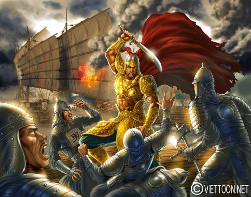 Trần Nhật Duật – danh tướng nhà Trần. Tranh miêu tả trận đánh oanh liệt đi vào lịch sử của ông – trận Hàm Tử